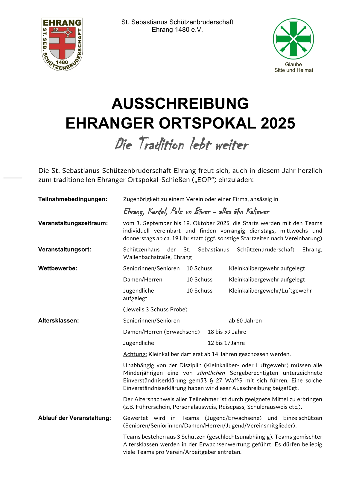 Die St. Sebastianus Schützenbruderschaft Ehrang freut sich auf rege Beteiligung und wünscht allen Teilnehmern viel Spaß und Frohe Weihnachten!