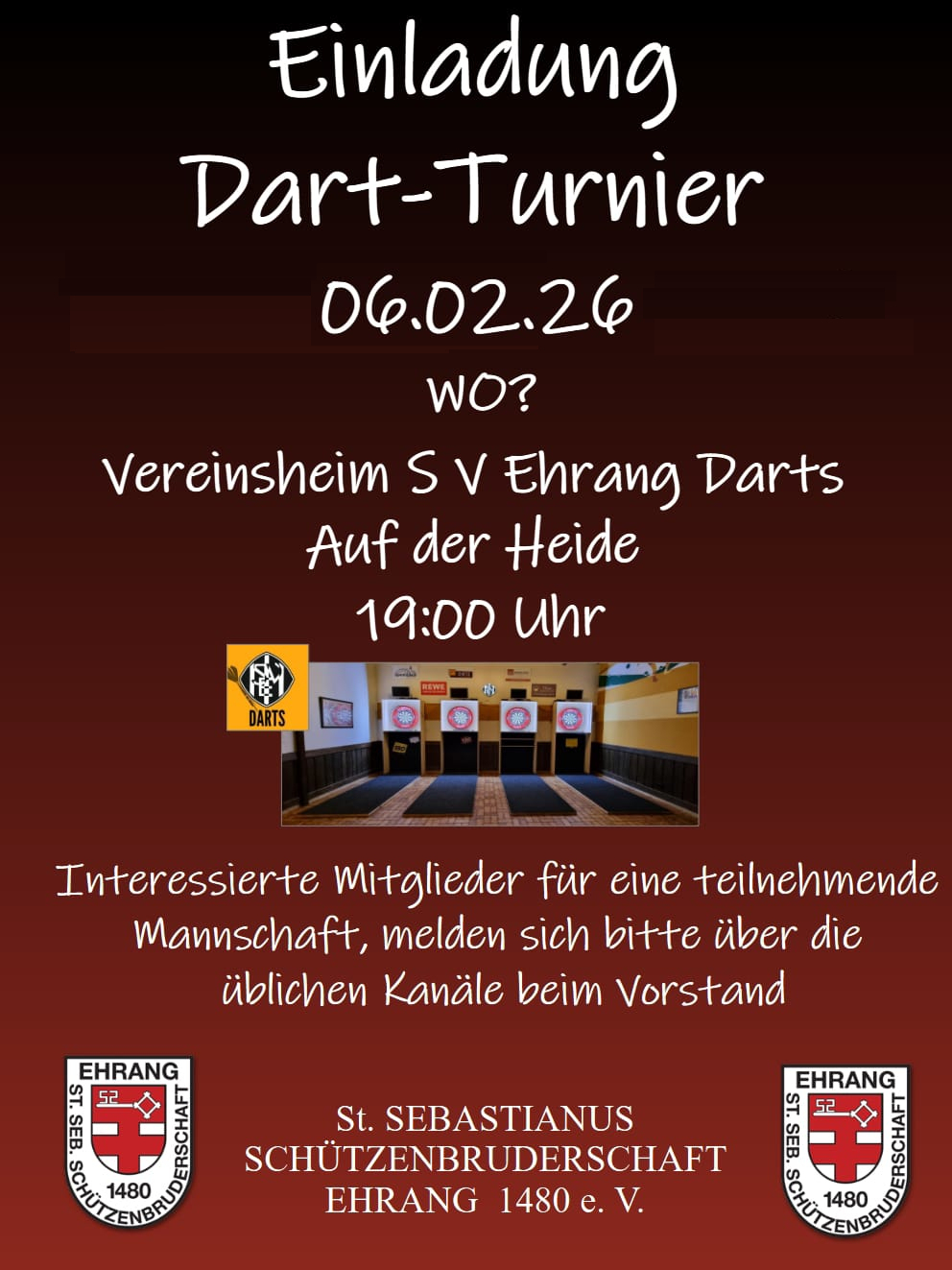 Der Termin ist der 06.02.2026 um 19:00 Uhr im Vereinsheim Auf der Heide, Ehrang.