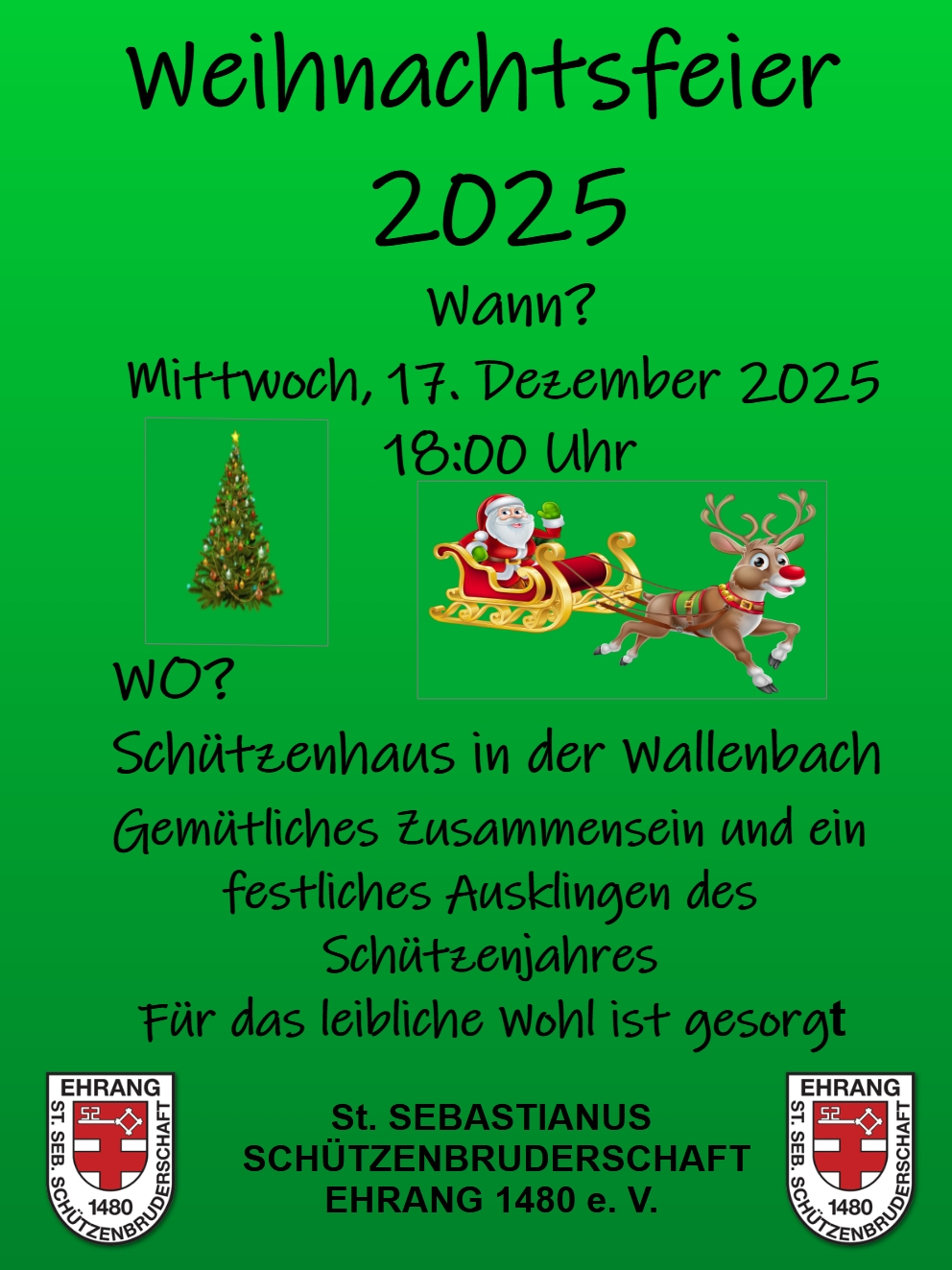 Die St. Sebastianus Schützenbruderschaft Ehrang freut sich auf rege Beteiligung und wünscht allen Teilnehmern viel Spaß und Frohe Weihnachten!